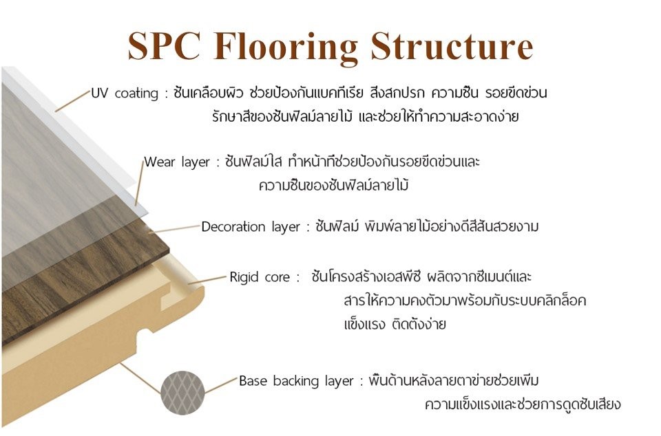 พื้น WSPC Parquet รุ่น Versailles UV Surface Treatment Wear Layer 0.3 mm Printing Layer Top Layer 1.5 mm WSPC Layer 4 mm. IXPE Foam 1.5 mm. . Thicknes 7.3 mm Size 600x600 mm