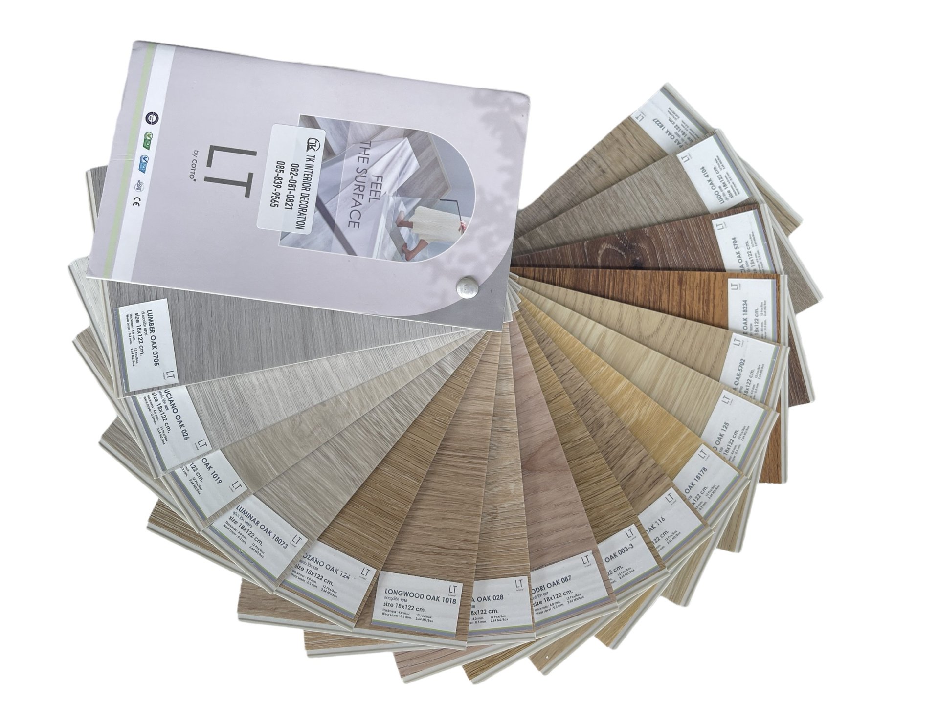 T.Thickness 5.3 mm Wear Layer 0.3 mm Size : 118x590(4.6"x23.2") 1 box = 1.26 sqm 18 sheets