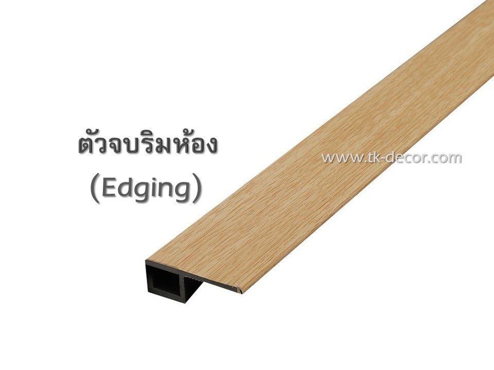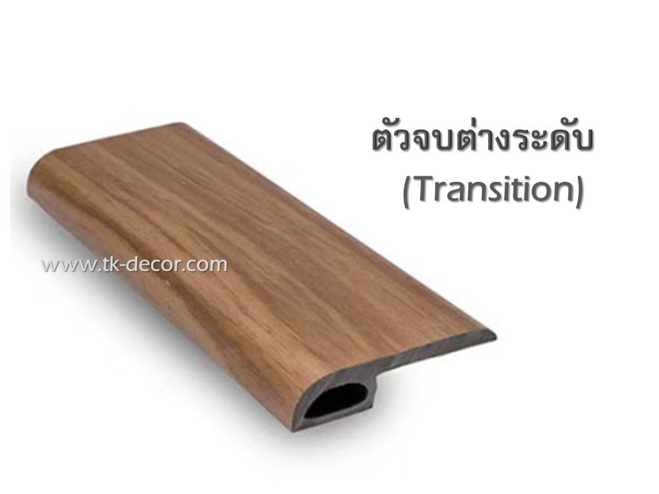อุปกรณ์จบงานสำหรับกระเบื้องไวนิลลายไม้ ผลิตจาก PVC หุ้มด้วยฟิล์มลายไม้ สามารถทำความสะอาดได้ง่าย ทนน้ำ ตัวจบติดตั้งระหว่างห้องหรือพื้นต่างระดับ เชื่อมต่อห้องเดินสะดวก