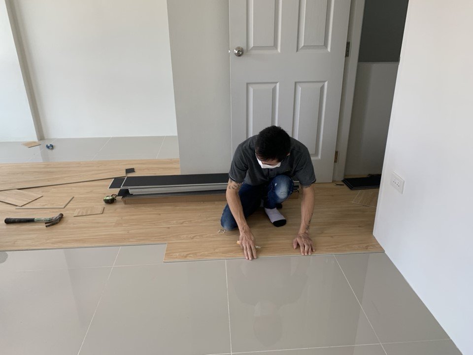 หลังจากวัดพื้นที่แล้ว ต่อไปก็ทำการเลือกกระเบื้องยาง ทาง TK INTERIOR DECORATION ขอแนะนำกระเบื้องยาง SPC เพราะกำลังได้รับความนิยมมากที่สุดใน พ.ศ. นี้ เนื่องจากสวยงามเหมือนไม้จริง แต่ดูแลรักษาง่ายกว่า ทนต่อความชื้นหมดกังวลเรื่องพื้นบวมที่ต้องซ่อมแซมกันอยู่บ่อย ๆ อีกทั้งยังมีราคาถูกกว่าอีกด้วยค่ะ