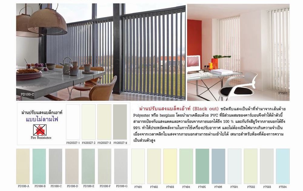 ใบมีความหนา 0.27 มม. ผลิตจากอลูมิเนียม เคลือบสีคุณภาพสูง กันแสงและรังสี UV ได้ 100% เหมาะอย่างยิ่งที่จะใช้ในบ้าน ออฟฟิศ ธนาคาร โรงพยาบาล หรือห้องที่ไม่มีลมเข้า สามารถติดกับบานประตู หรือบานที่เปิด-ปิดบ่อยได้ จึงไม่ต้องแปลกใจเลยว่าทำไมออฟฟิศที่เปิดแอร์แต่ไม่เปิดหน้าต่างทั่วไปถึงนิยมใช้กันเป็นอย่างมาก สีที่ได้รับความนิยม คือ สีเทาV056,V079, สีขาวV201 ค่ะ